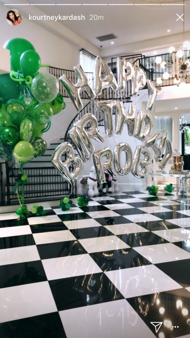 Rob didn't just get a shout out on Instagram for his big day. As Kourtney Kardashian showed off on her Instagram Story, the reality star was treated to a huge display of balloons reading "Happy birthday Rob."