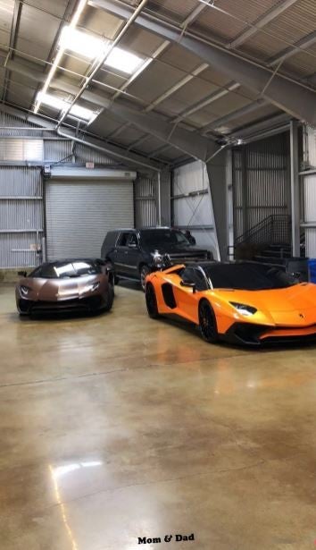 Pictured in the shot was a bright orange Lamborghini Aventador, as well as another in a darker color. "That's a wrappppp," she captioned a snap of the orange car's suicide doors, before sharing a series of videos of herself.